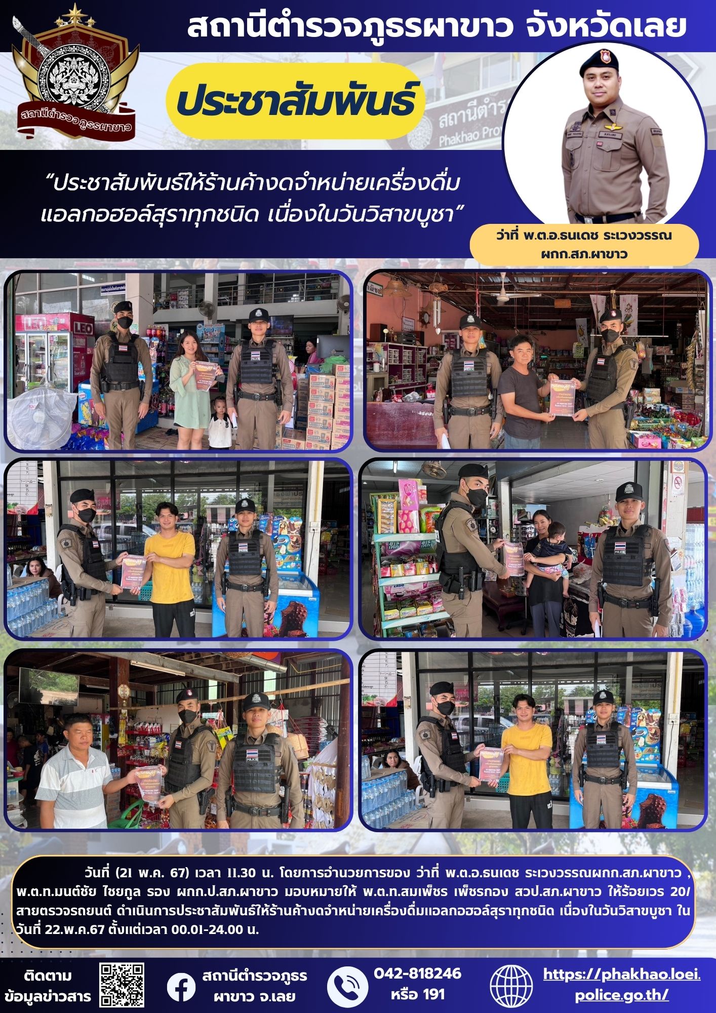 ประชาสัมพันธ์ให้ร้านค้างดจำหน่ายเครื่องดื่ม แอลกอฮอล์สุราทุกชนิด เนื่องในวันวิสาขบูชา 21 พฤษภาคม 2567 โดย Phakhao42240 / ไม่มีหมวดหมู่ FacebookFacebookXXLINELine