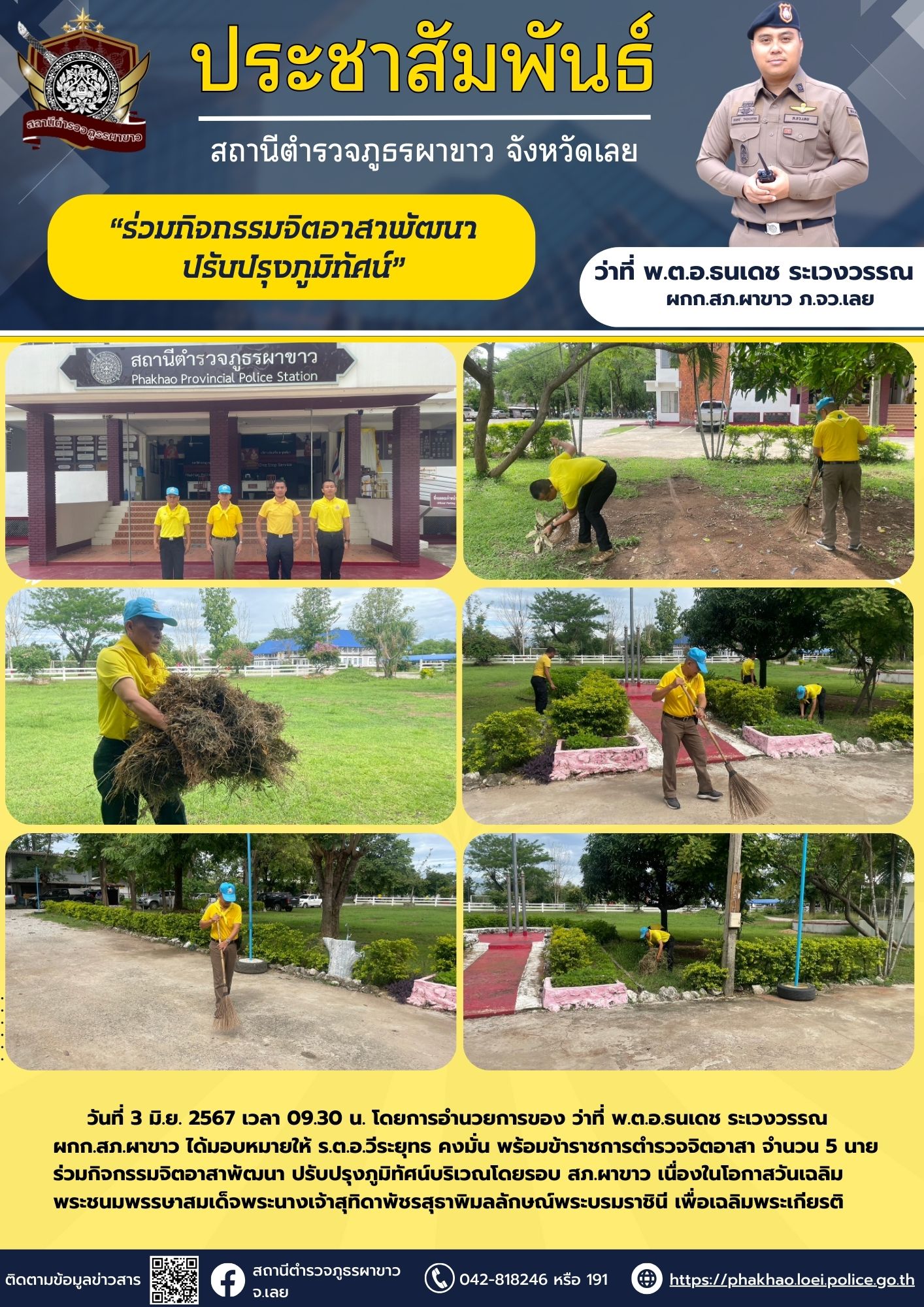 ร่วมกิจกรรมจิตอาสาพัฒนาปรับปรุงภูมิทัศน์ บริเวร สภ.ผาขาว 3 มิถุนายน 2567 โดย Phakhao42240 / ข่าวประชาสัมพันธ์,ข่าวกิจกรรม,ข่าวประชาสัมพันธ์ FacebookFacebookXXLINELine