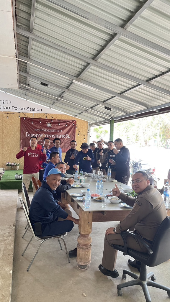 ว่าที่ พ.ต.อ.ธนเดช ระเวงวรรณ ผกก.สภ.ผาขาว ได้ดำเนินการ โครงการอาหารกลางวัน สภ.ผาขาว เพื่อเป็นสวัสดิการและขวัญกำลังใจให้กับ เจ้าหน้าที่ตำรวจ สภ.ผาขาวและแม่บ้าน โดยดำเนินการทุกวันพุธ ของสัปดาห์ ณ สภ.ผาขาว