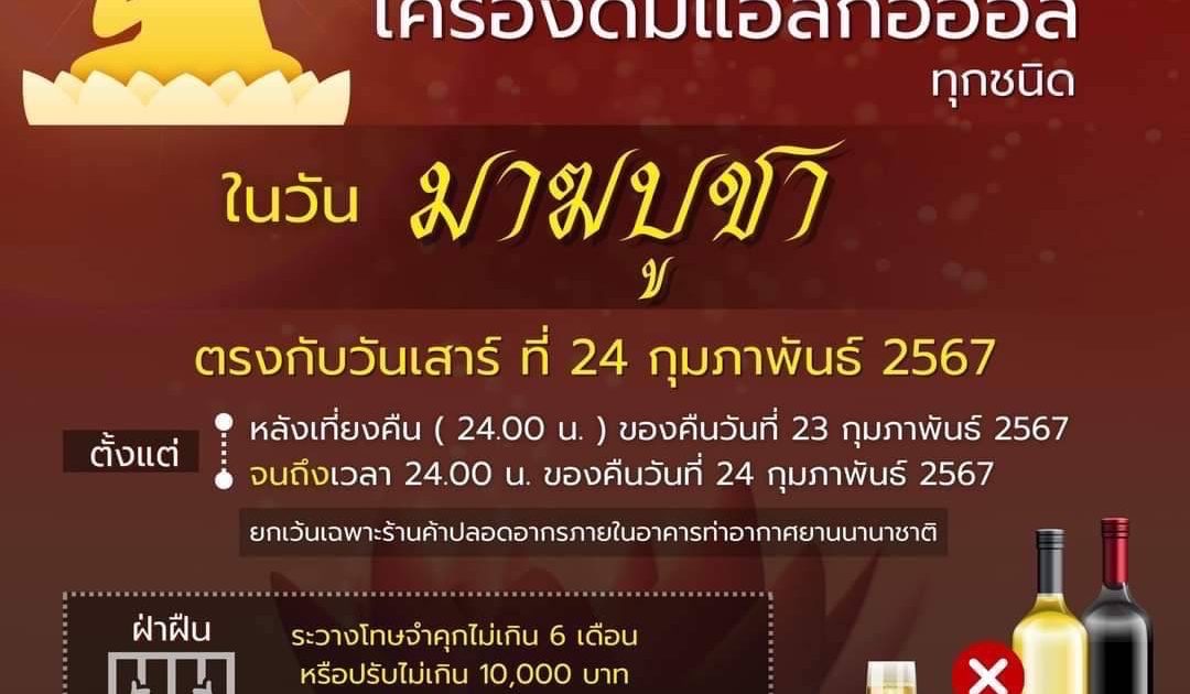 สภ.ผาขาว ขอประชาสัมพันธ์ ในวันมาฆบูชา ให้งดจำหน่ายเครื่องดื่มแอลกอฮอล์ ในวันที่ 24 ก.พ. 2567