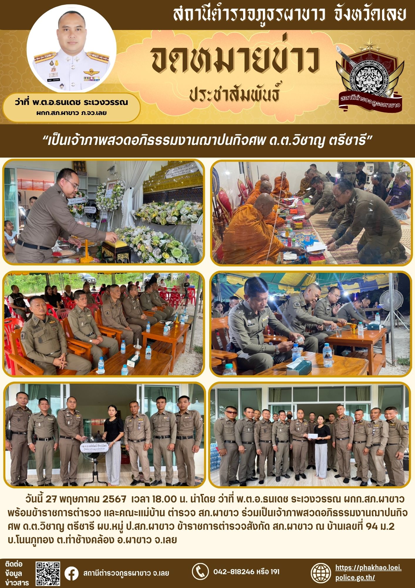 สภ.ผาขาว เป็นเจ้าภาพสวดอภิธรรมศพ ด.ต.วิชาญ ตรีชารี 27 พฤษภาคม 2567 โดย Phakhao42240 / ข่าวประชาสัมพันธ์,ข่าวกิจกรรม,ข่าวประชาสัมพันธ์,ไม่มีหมวดหมู่ FacebookFacebookXXLINELine