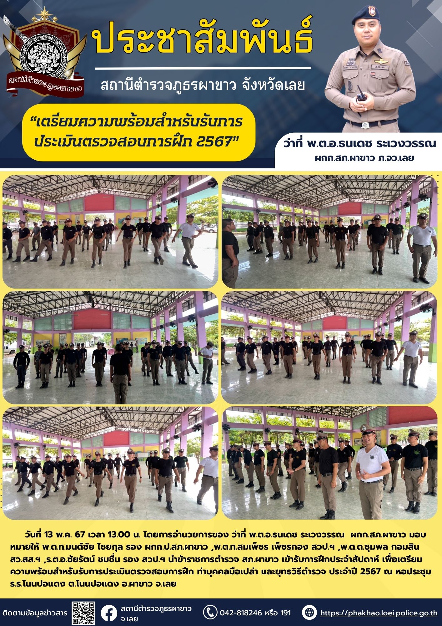 เตรียมความพร้อมสำหรับรับการประเมินตรวจสอบการฝึก 2567 ของ ภ.จว.เลย 13 พฤษภาคม 2567 โดย Phakhao42240 / ข่าวประชาสัมพันธ์,ข่าวกิจกรรม,ข่าวประชาสัมพันธ์ FacebookFacebookXXLINELine