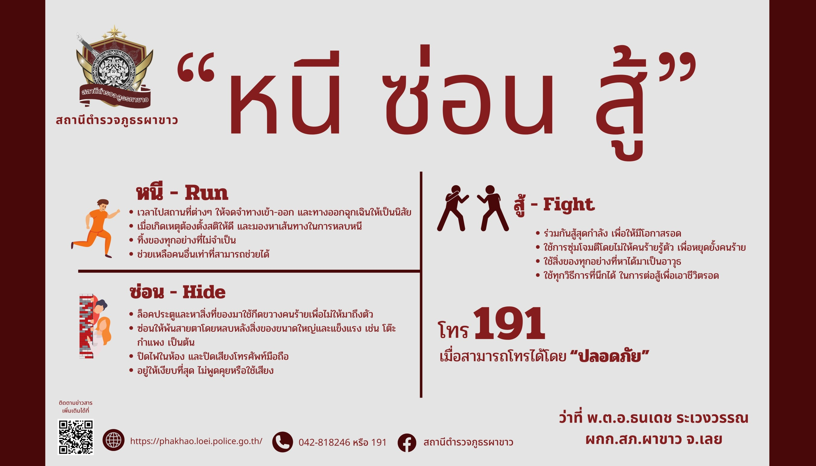 กลวิธี “หนี-ซ่อน-สู้” หรือ “Run Hide Fight” เป็นหลักสากลที่ FBI และหน่วยงานบ