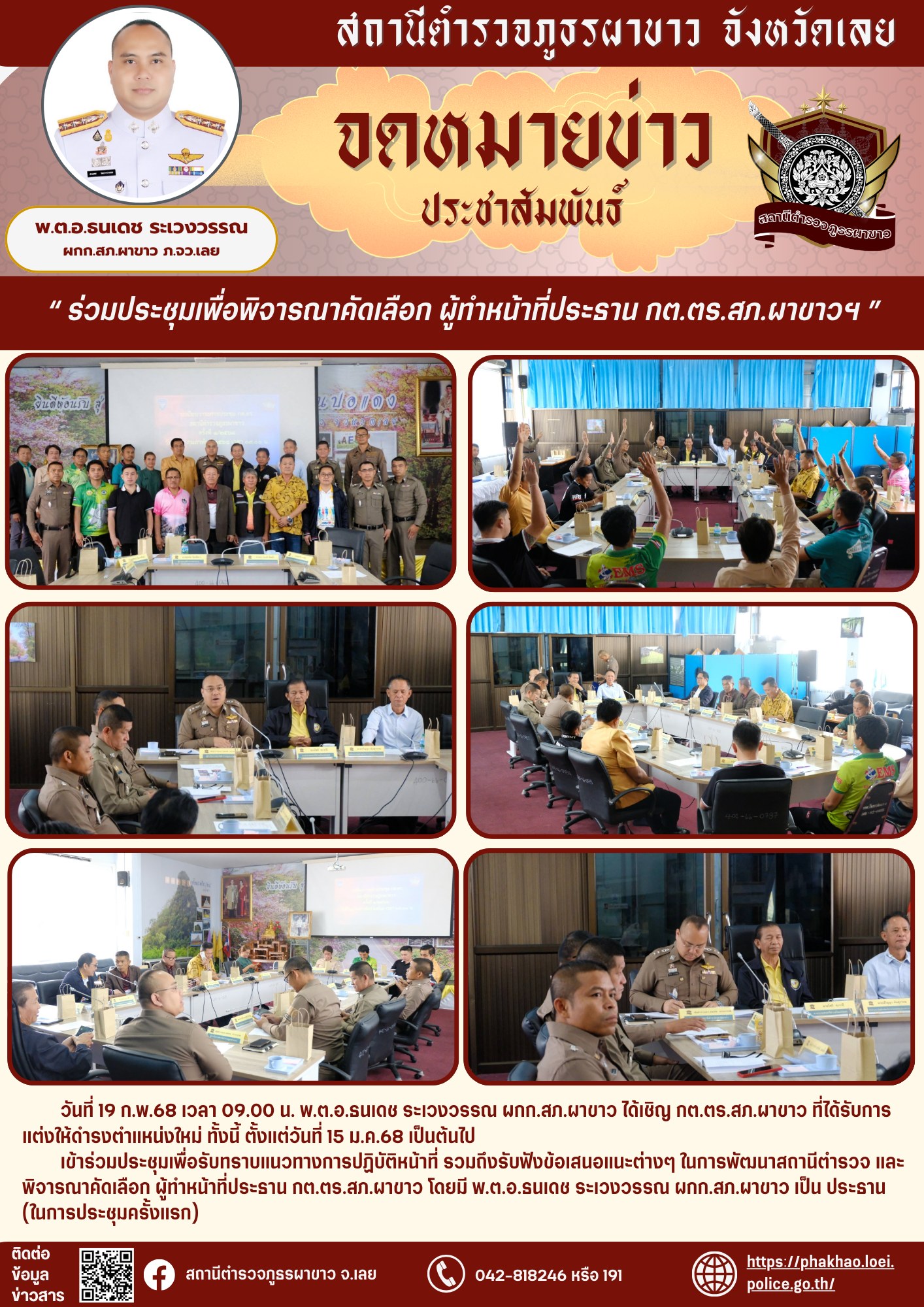 สภ.ผาขาว ประชุมเพื่อพิจารณาคัดเลือก ผู้ที่ทำหน้าที่ประธาน กต.ตร.สภ.ผาขาว 19 กุมภาพันธ์ 2568 โดย Phakhao42240