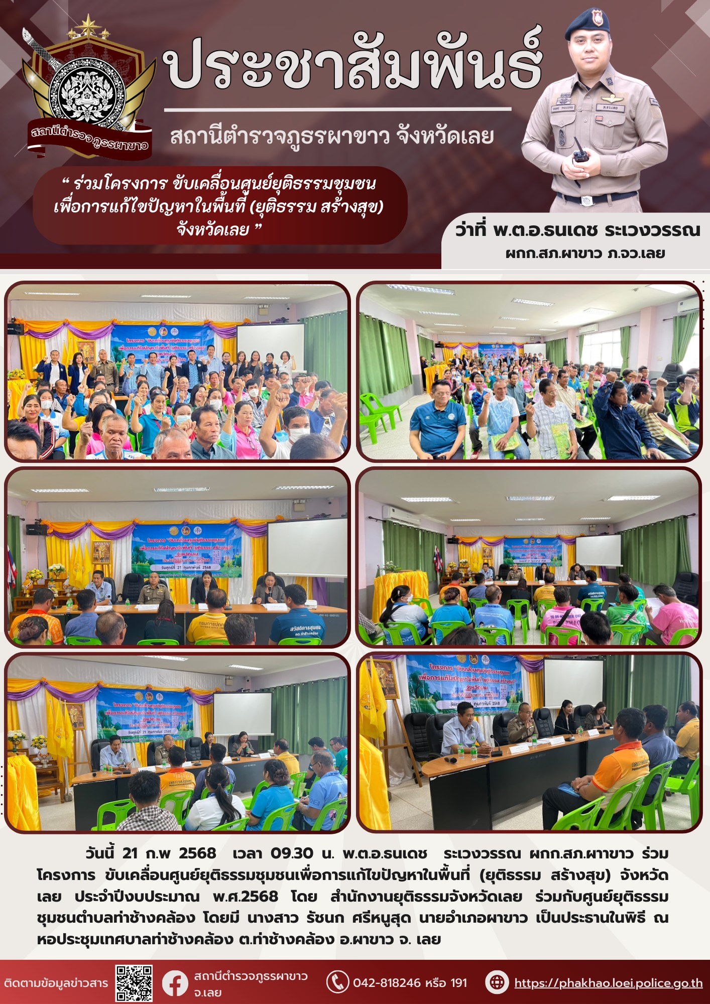 สภ.ผาขาว ร่วมโครงการ ขับเคลื่อนศูนย์ยุติธรรมชุมชนเพื่อกการแก้ไขปัญหาในพื้นที่ (ยุติธรรม สร้างสุข ) จังหวัดเลย 21 กุมภาพันธ์ 2568 โดย Phakhao42240