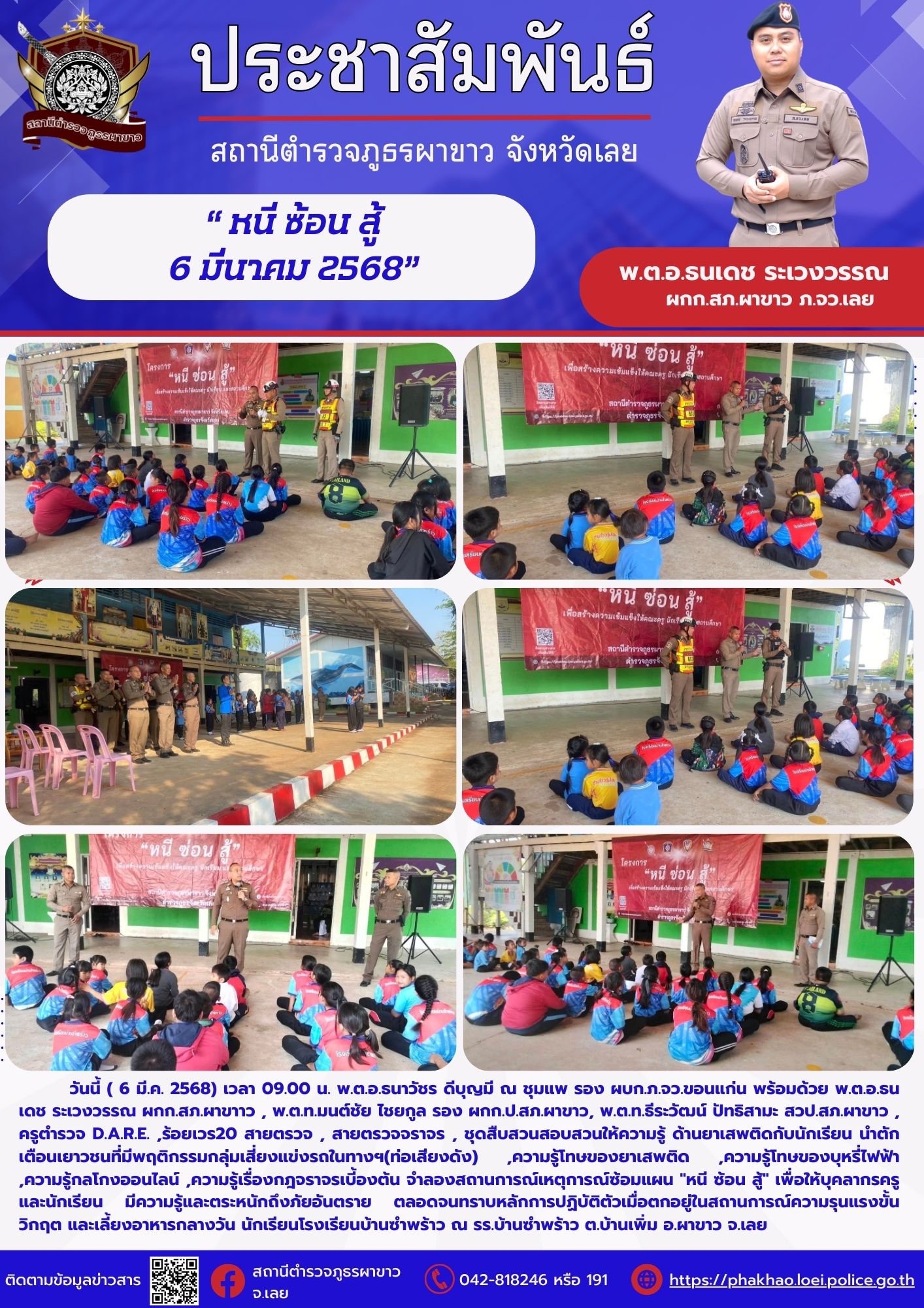 สภ.ผาขาว ให้ความรู้เรื่อง หนี ซ่อน สู้ แก่นักเรียนโรงเรียนบ้านซำพร้าว 6 มีนาคม 2568 โดย Phakhao42240 สภ