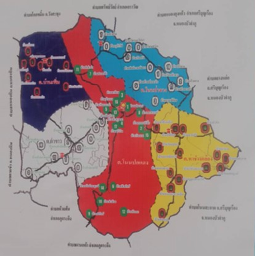 ประกอบด้วย ตำบลโนนปอแดง 17 หมู่บ้าน / ตำบลโนนป่าซาง 12 หมู่บ้าน