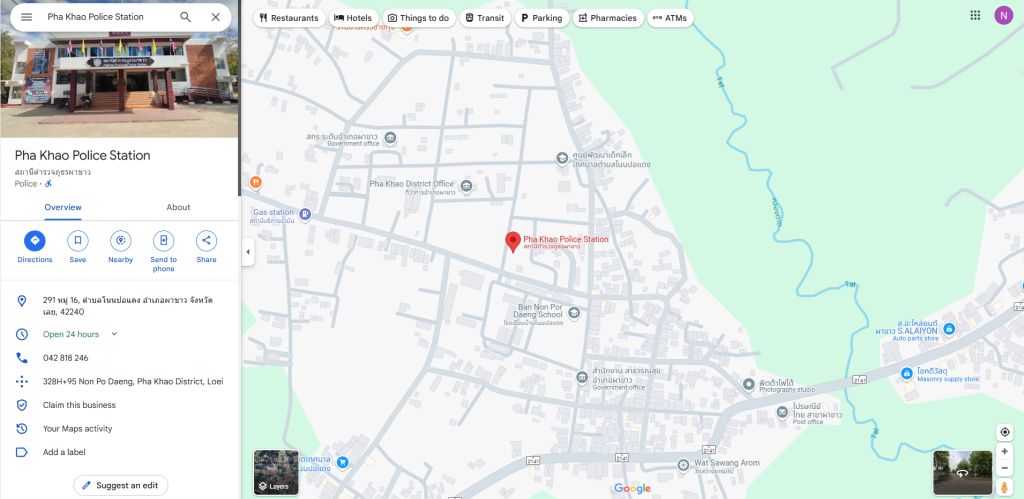 O5 ข้อมูลการติดต่อ และ ช่องทางการถาม – ตอบ/รับฟังความคิดเห็น 11 มกราคม 2567 โดย Phakhao42240 / มาตรฐาน OIT คลิ๊กเพื่อไปยังลิงก์ Google Maps ของสถานีตำรวจภูธรผาขาว สถานีตำรวจภูธรผาขาว ที่อยู่ 291 ม.16 ต.โนนปอแดง ผาขาว, เลย 42240 เบอร์โทรติดต่อร้องทุกข์ 042818246 , Email : phakhao2566@gmail.com Facebook : สถานีตำรวจภูธรผาขาว ช่องทางแสดงความคิดเห็น FacebookFacebookXXLINELine