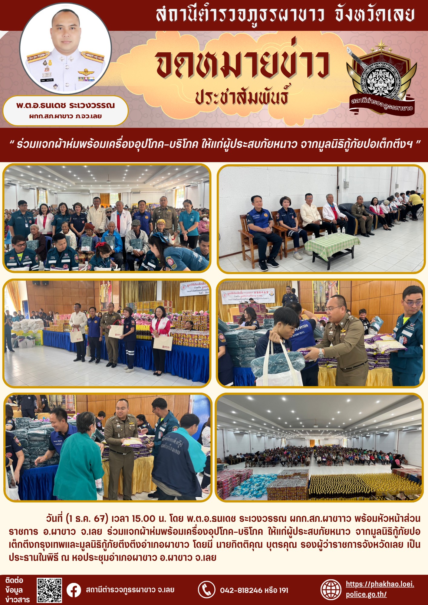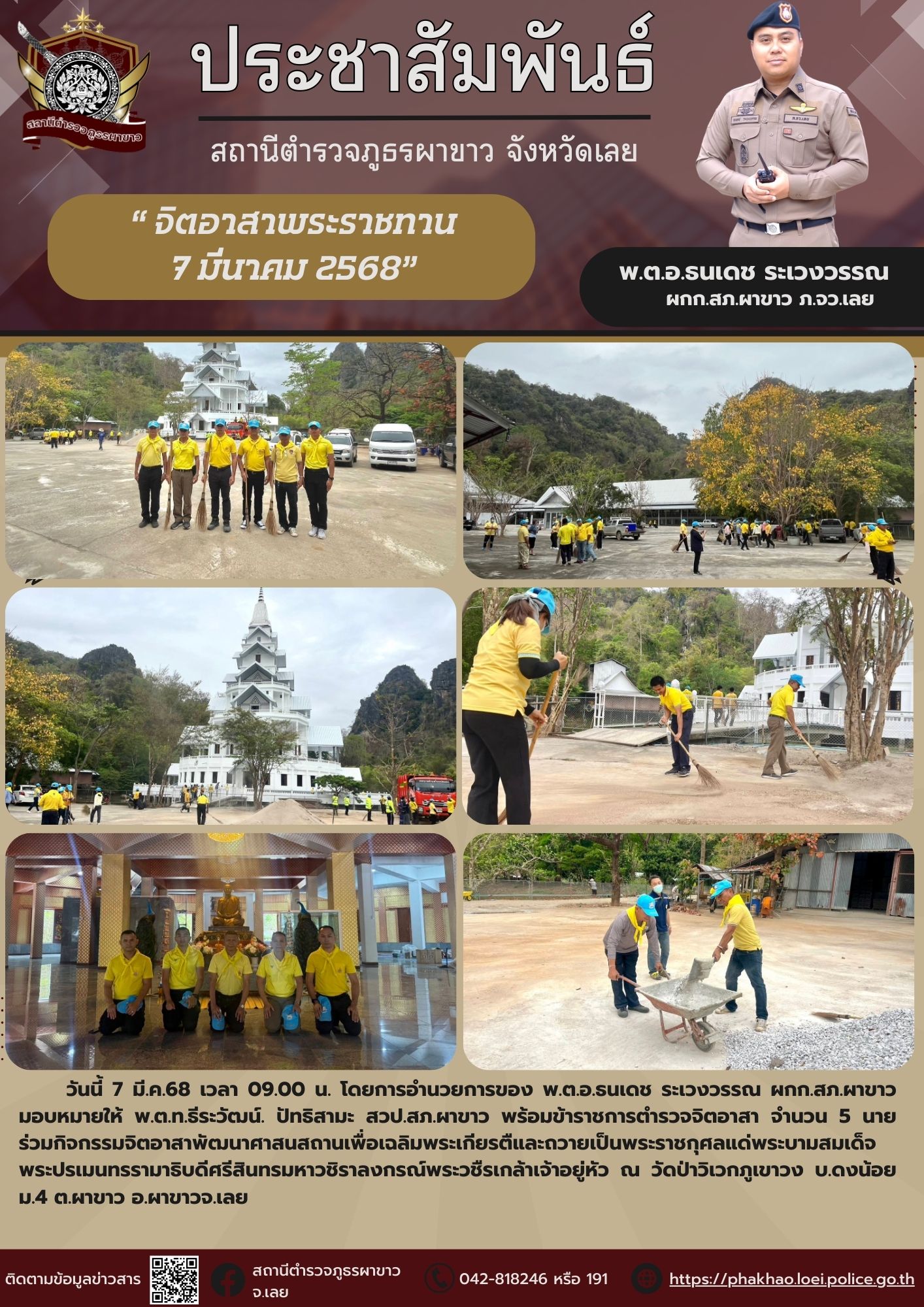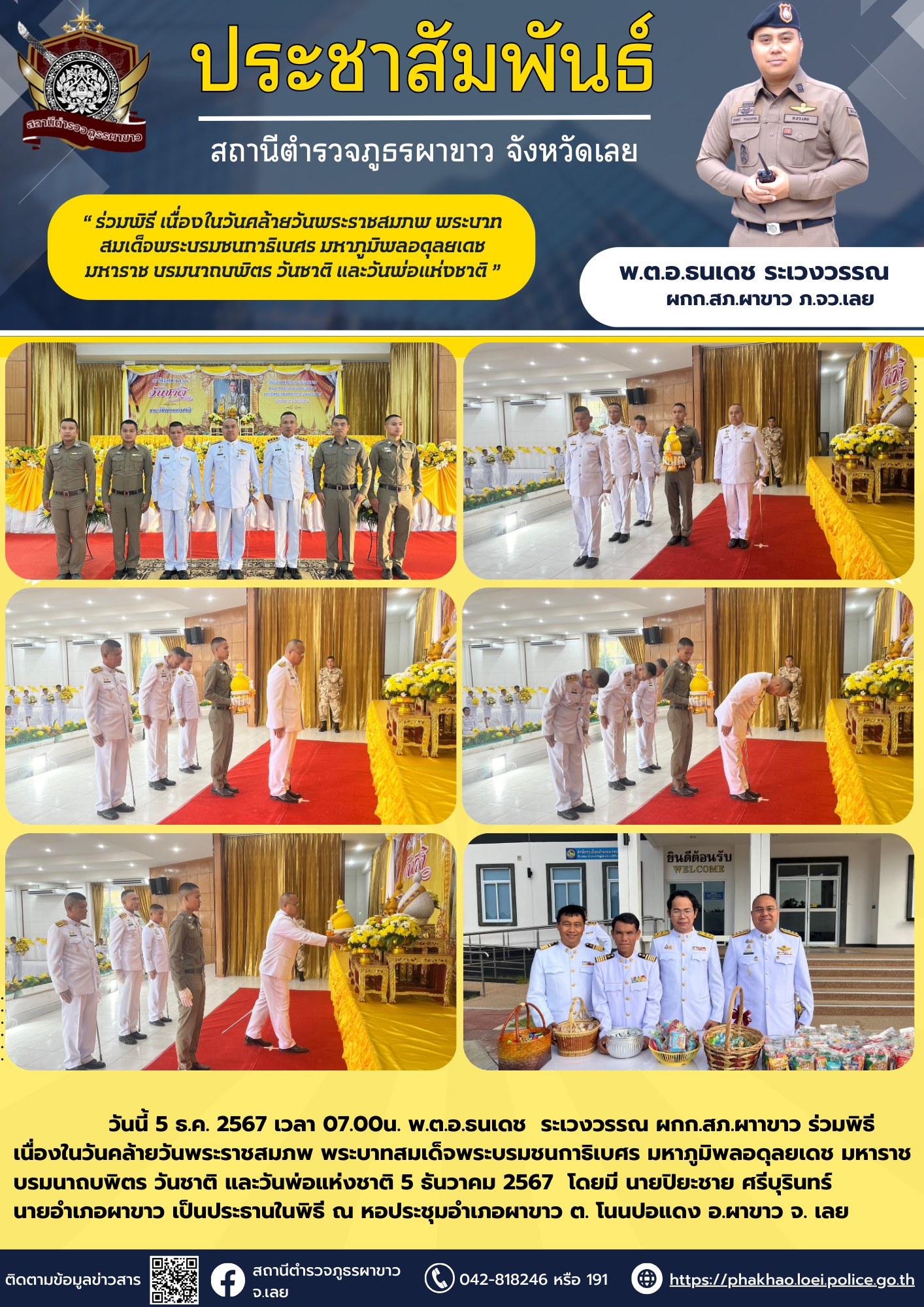 กิจกรรมที่ 3 ในรอบการประชุม กต.ตร. ประจำเดือน พ.ต.อ. ธนเดช ระเวงวรรณ ผกก.สภ.ผาขาว ได้เริ่มต้นประชาสั