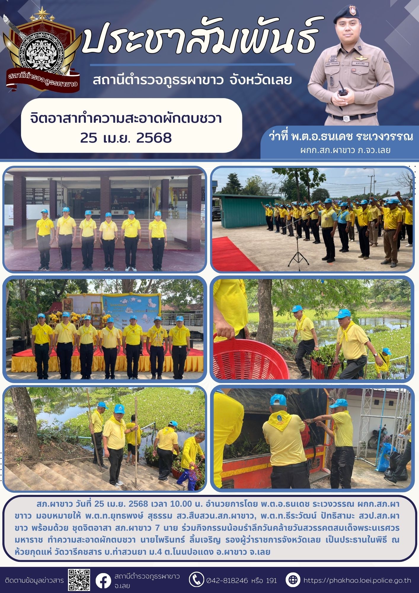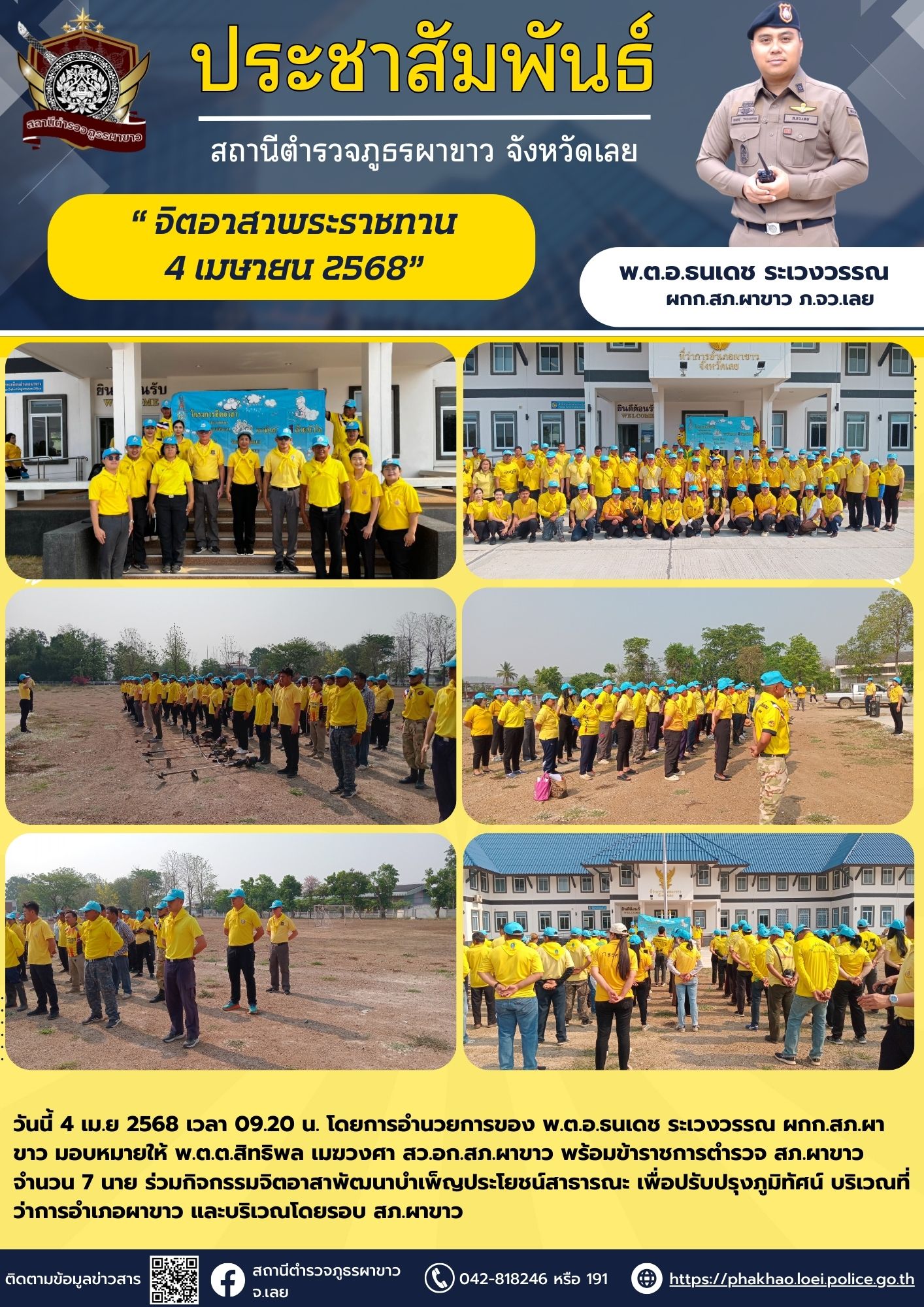 พ.ต.อ. ธนเดช ระเวงวรรณ ผกก.สภ.ผาขาว ได้เริ่มต้นประชาสัมพันธ์โครงการ Police ITA 2568 เพื่อให้ทราบและทำความเข้าใจก่อน เริ่มต้นประเมินการทำงานของเจ้าหน้าที่และหน่วย ประจำปี 2568